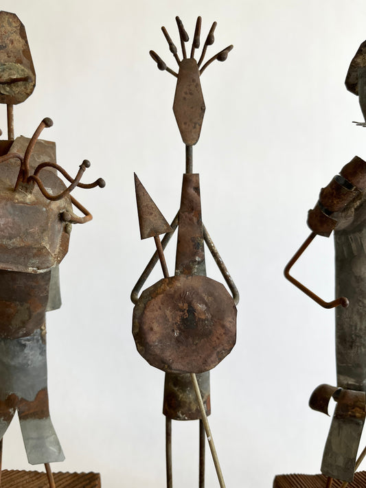 Reserved - Handmade Metal Warrior Statues Trio