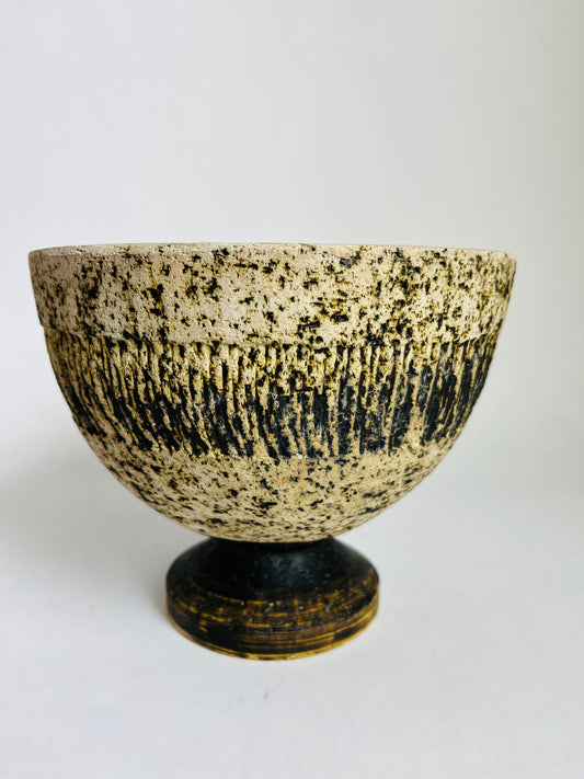 Reserved Listing - Studio Pottery Vase, MC Giraffe, Wood Footed Pedestal
