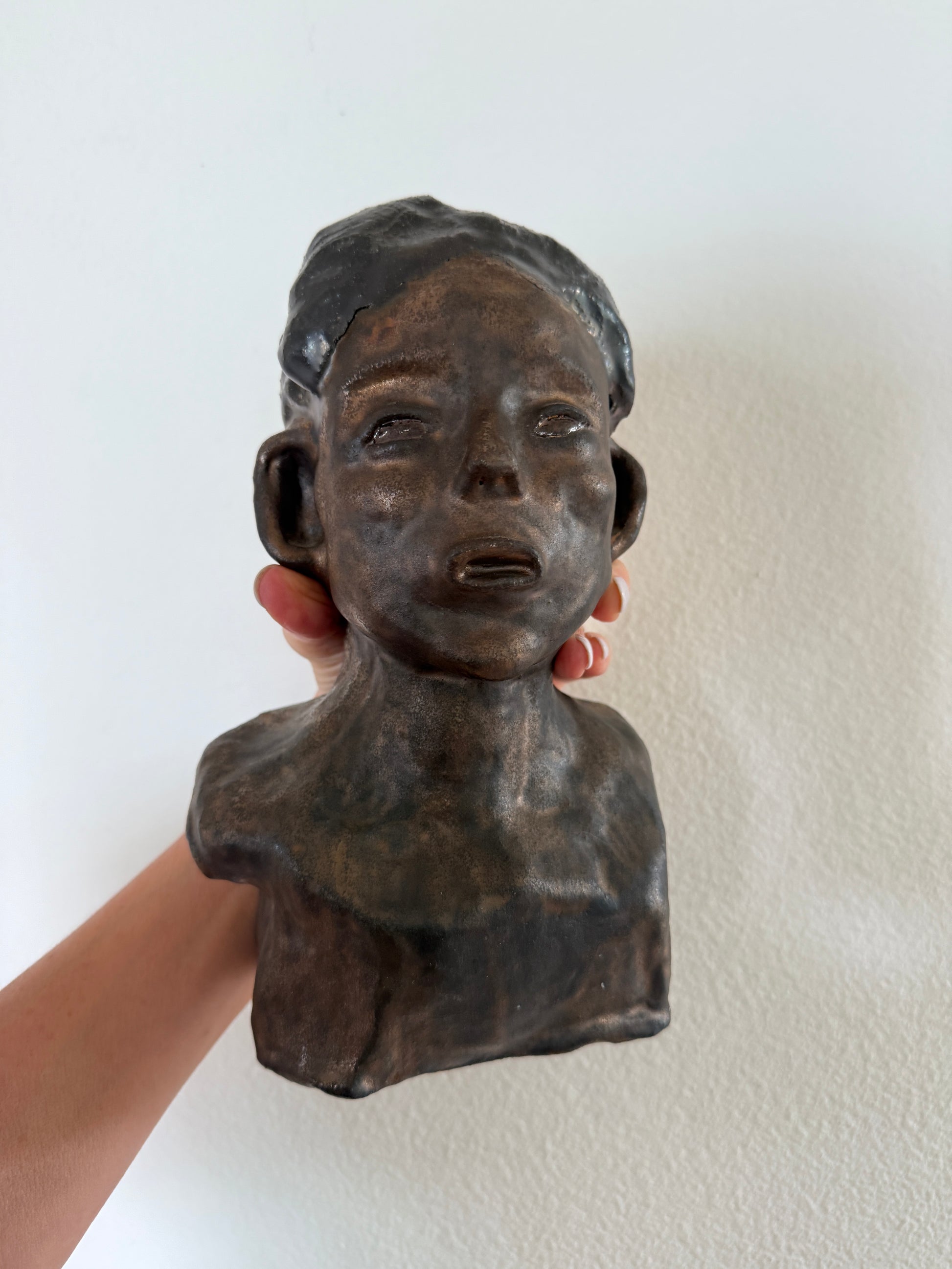 Hand Sculpted Clay Stamped Bust Bronze Finish